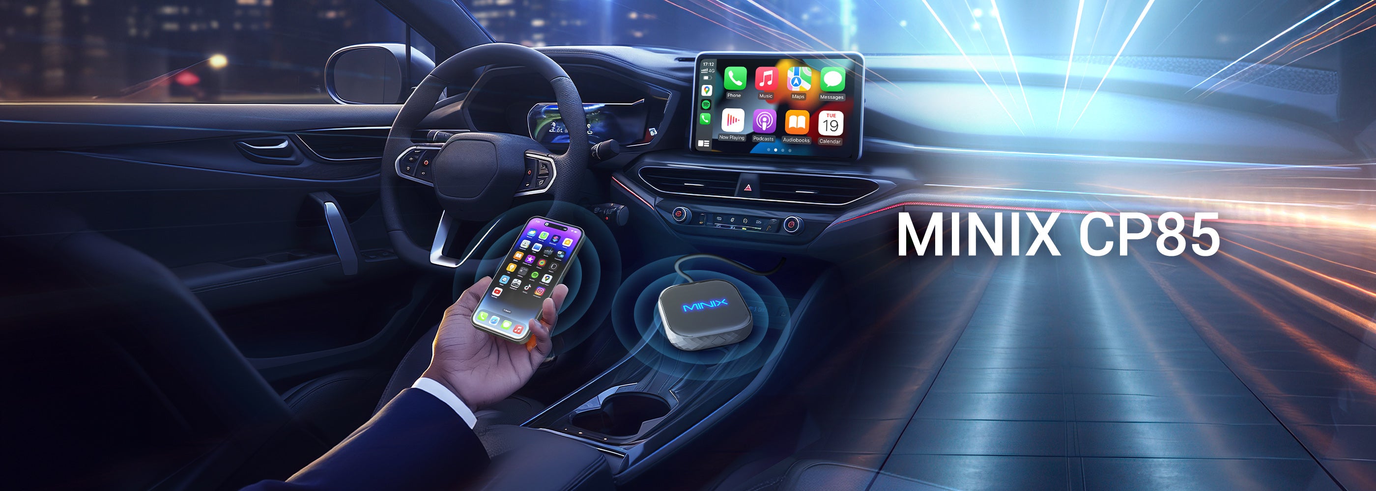 Transform your driving experience with the Minix CP85, a compact device designed to bring wireless convenience to your vehicle. With support for both Apple CarPlay and Android Auto, the CP85 seamlessly integrates your smartphone with your car's infotainment system, eliminating the need for cumbersome cables.