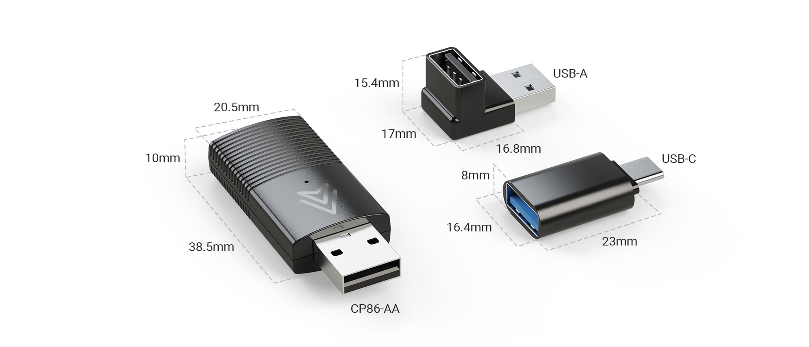 Product Weight: 8.2g, 13.2g (with USB-A to USB-C Adapter), 15g (with USB-A to USB-A Right Angle Adapter)