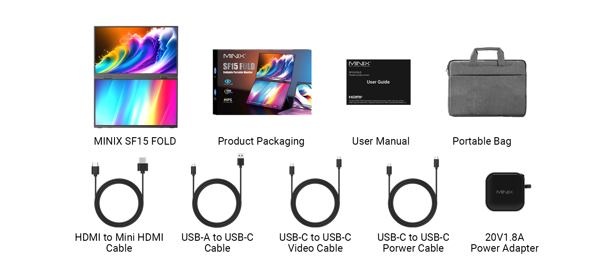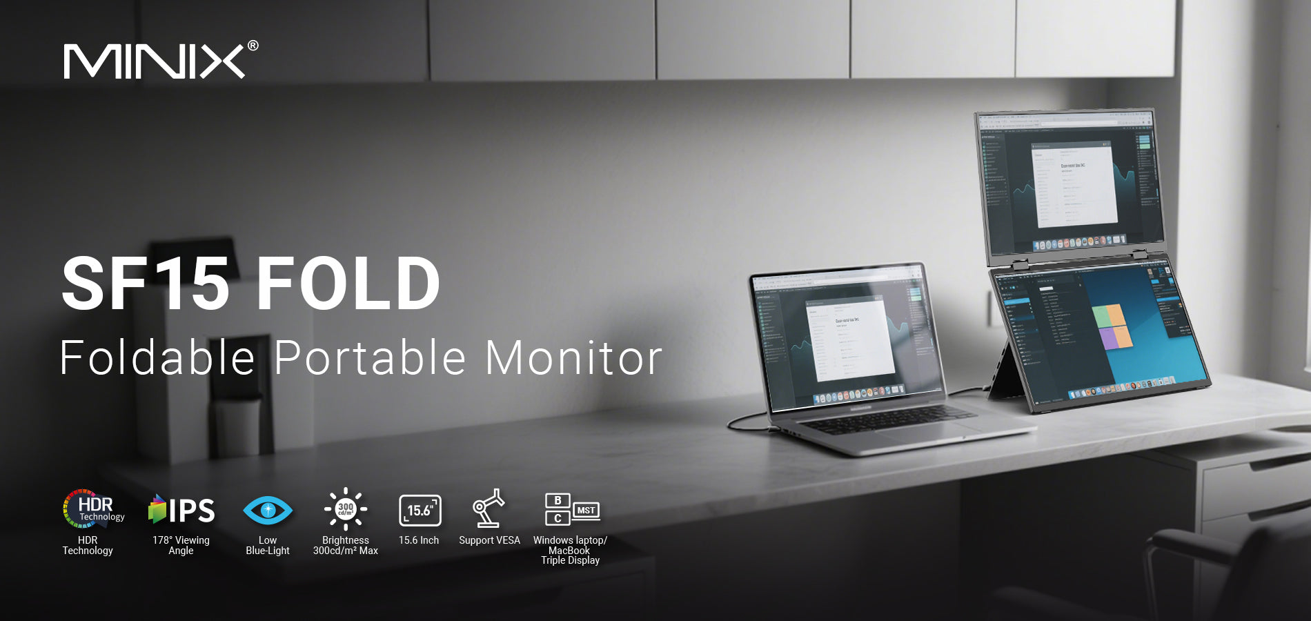 MINIX SF15 FOLD 15.6" Dual-Screen Foldable Portable Monitor