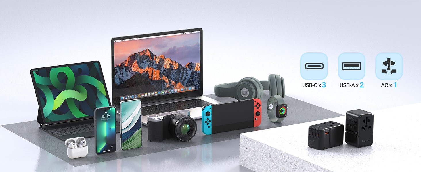 The Minix Universal Travel Adapter leverages advanced GaN III technology for efficient, high-speed charging in a compact design, ensuring maximum portability and performance wherever you go.