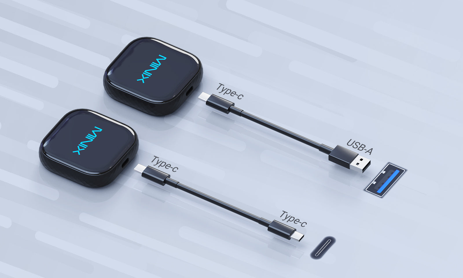Der Minix CP85 unterstützt sowohl CarPlay- als auch Android Auto-Systeme mit USB-A- oder USB-C-Anschlüssen. Er wird mit zwei verschiedenen Kabeln geliefert, die eine nahtlose Integration und Kompatibilität mit einer Vielzahl von Geräten gewährleisten.