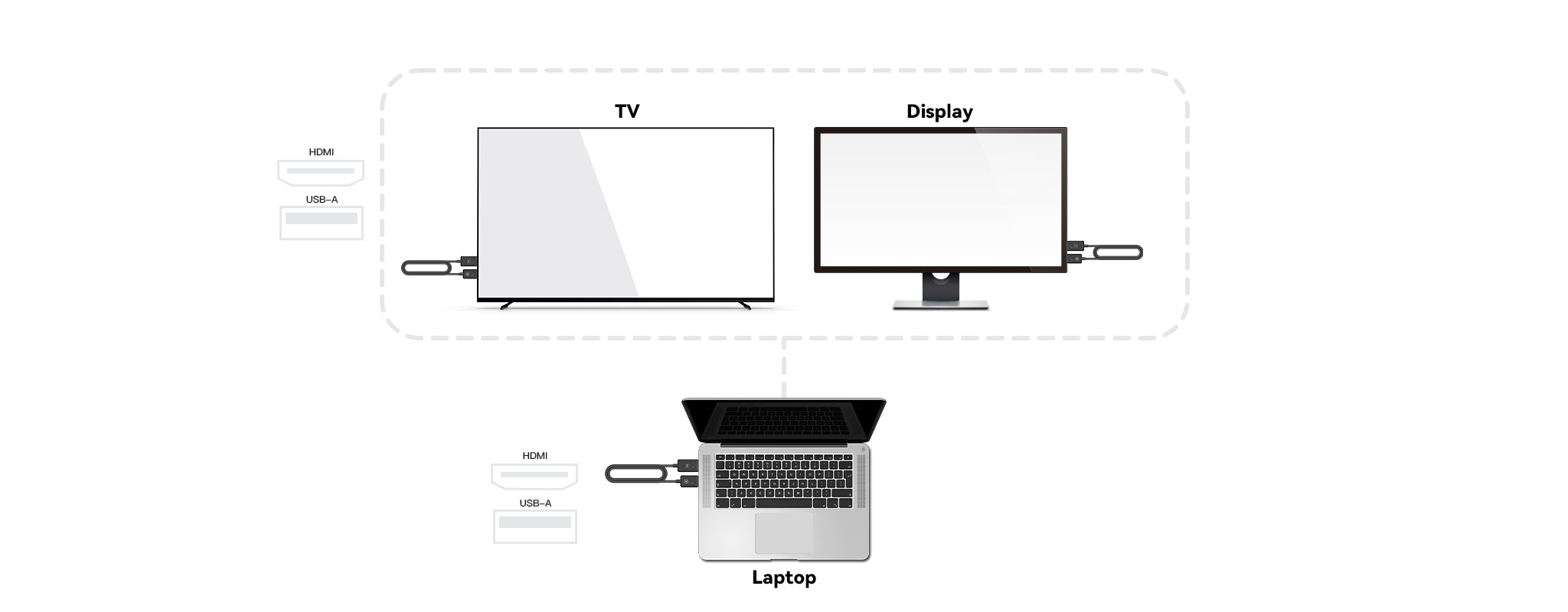 Kompatible Geräte: Laptops, Spielekonsolen, Smartphones mit Unterstützung für Standard-HDMI-Ausgang.