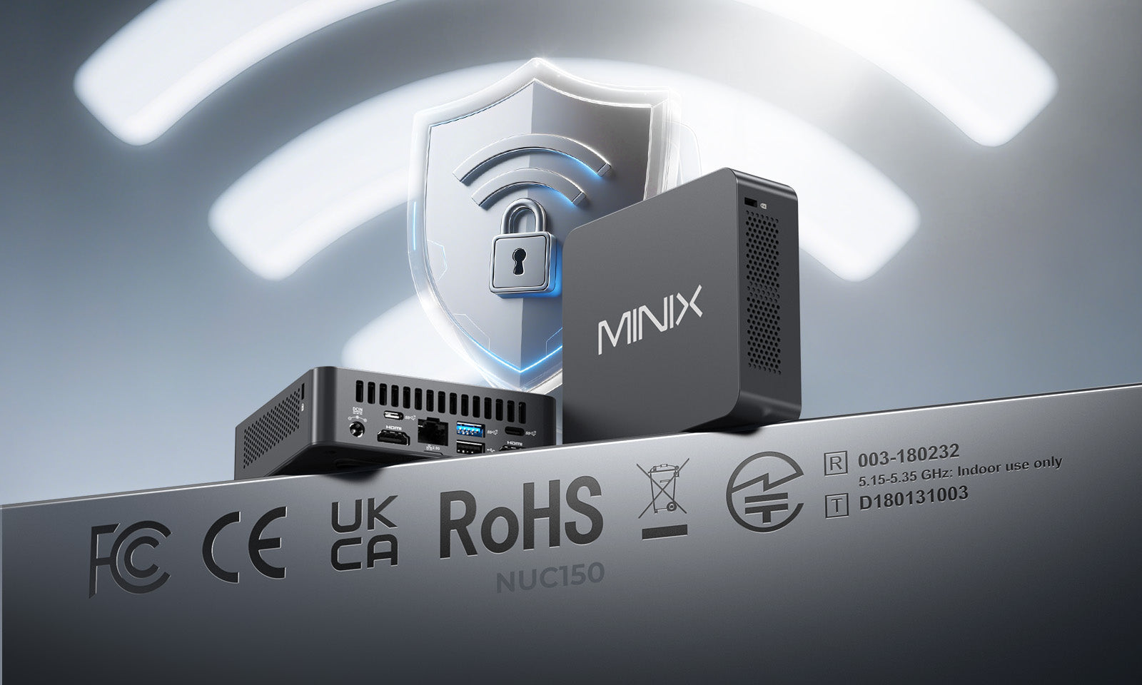 Der NUC150 verfügt über verschiedene Zertifizierungen, darunter FCC, CE, UKCA, ROHS, WEEE und PSE, und gewährleistet damit die Einhaltung globaler Sicherheits- und Umweltstandards. Auch sein WLAN-Modul, das AX201NGW, hat zahlreiche Zertifizierungen von Aufsichtsbehörden weltweit erhalten und garantiert so zuverlässige und sichere WLAN-Konnektivität.
