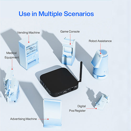El versátil MINIX X35-i Max se adapta perfectamente a diversos escenarios, como máquinas expendedoras, consolas de juegos, asistencia robótica y señalización publicitaria, demostrando su adaptabilidad y confiabilidad en diversas aplicaciones.