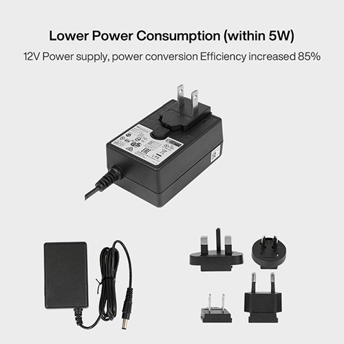 Adaptador de 12 V/2 A incluido (certificado CE, FCC)