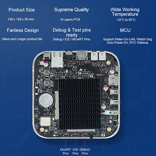El MINIX X35-i Max se destaca por su menor consumo de energía, prevención electrostática para interfaces, puerto Gigabit protegido contra rayos, protección contra sobretensión, fuente de alimentación de 12 V y un impresionante aumento del 85 % en la eficiencia de conversión de energía para un rendimiento óptimo.