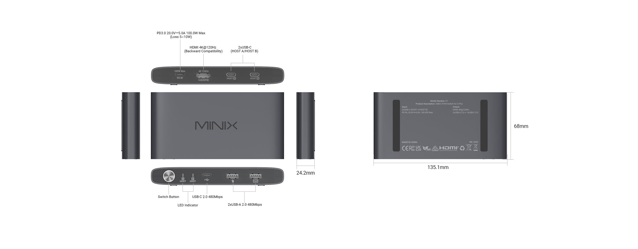 Conçu pour les professionnels, les joueurs et les utilisateurs multitâches, le commutateur KVM K1 2 en 1 à double port USB-C présente un profil ultra-fin de 24, 2 mm et un boîtier métallique robuste. Son format compact se glisse facilement dans une poche, un sac ou un espace de travail restreint, tandis que sa construction métallique durable améliore la dissipation de la chaleur et garantit une fiabilité à long terme, même dans les environnements les plus exigeants.