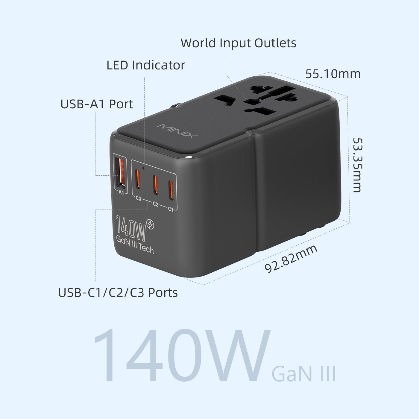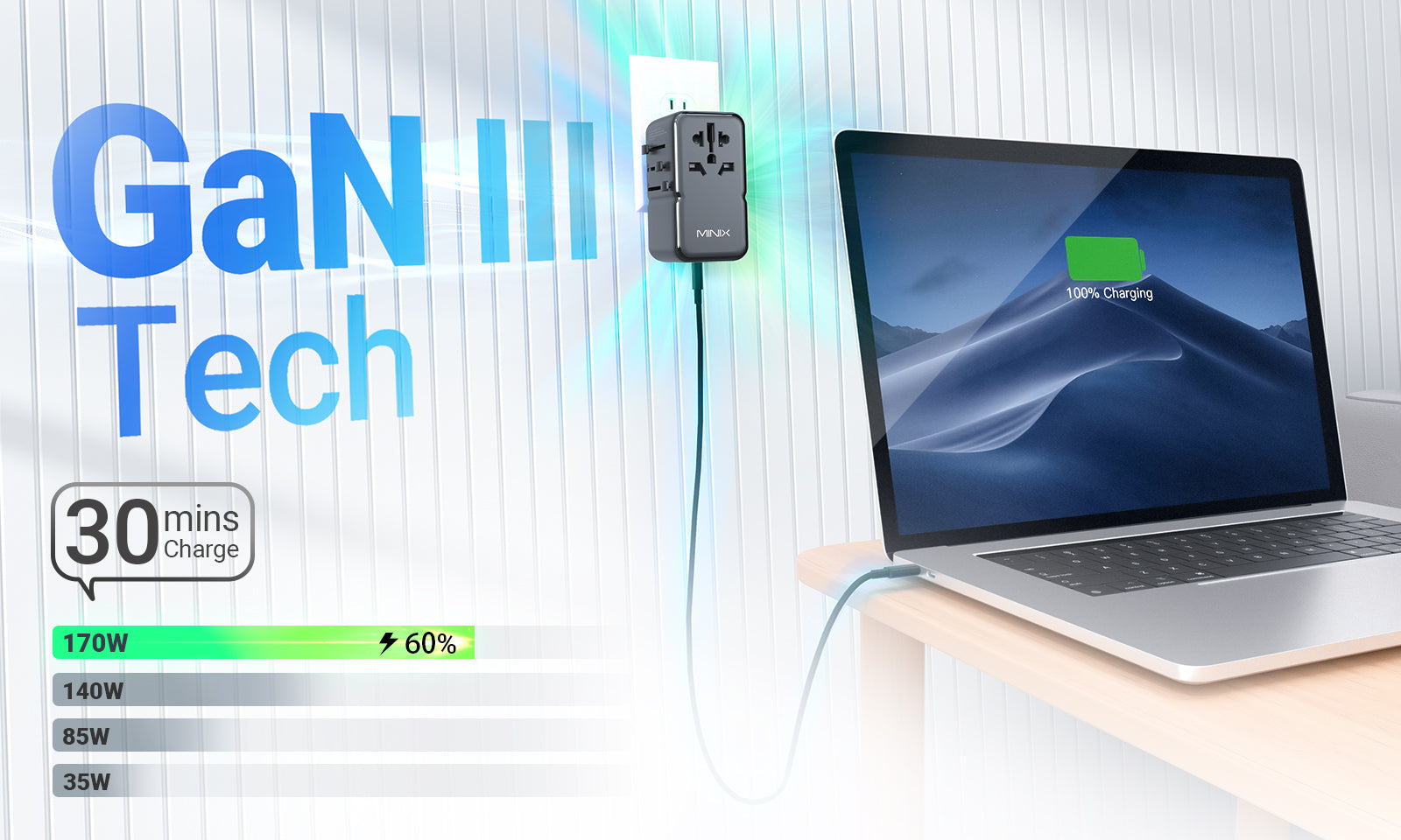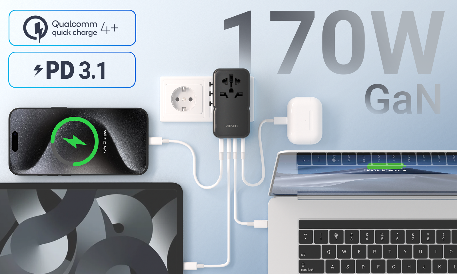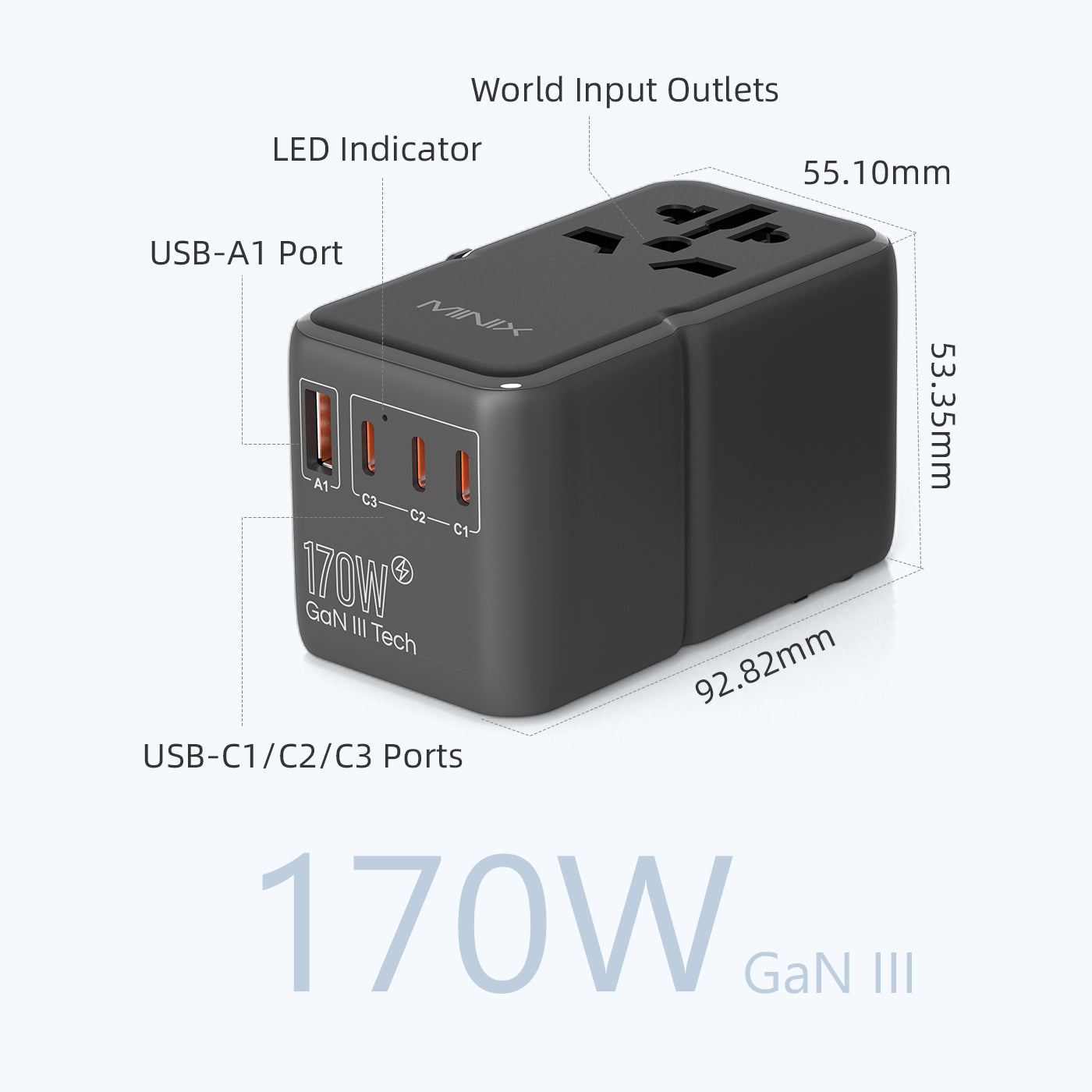 Adaptateur de voyage universel MINIX TP170 GaN-III 170 W