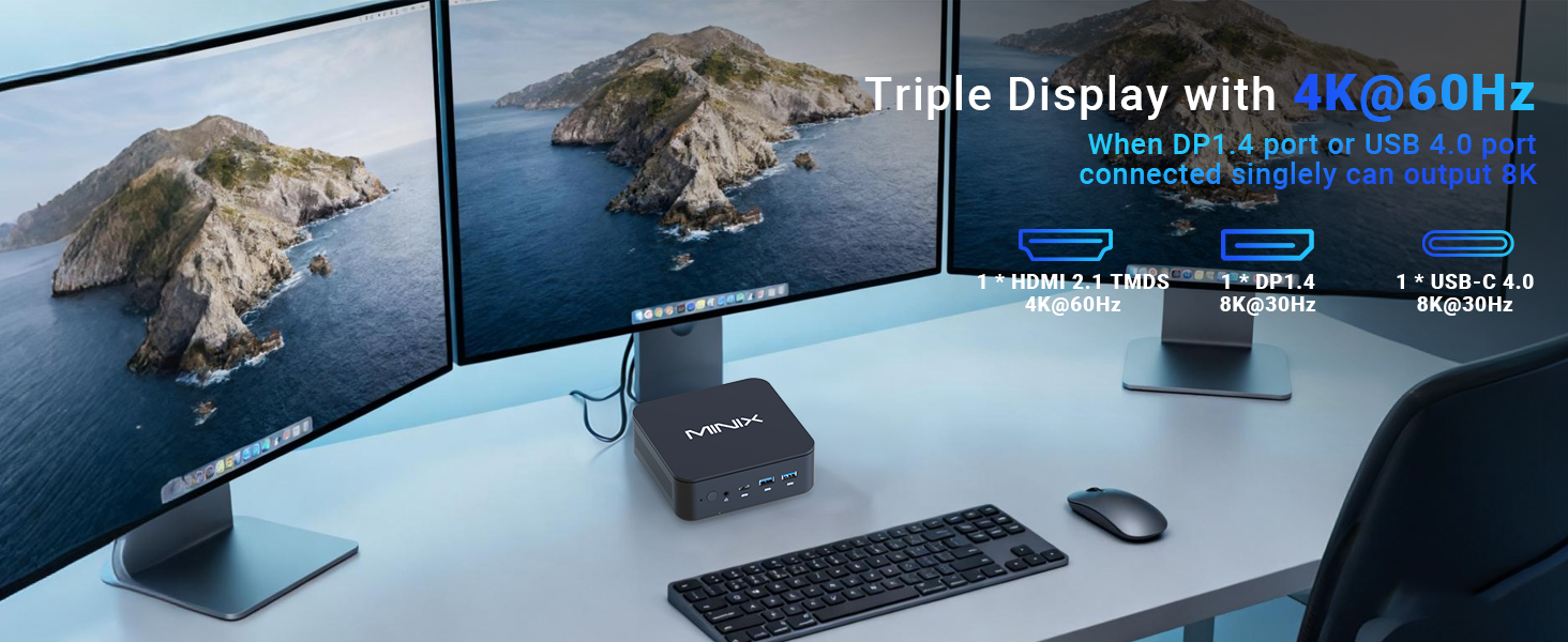 Potrójny wyświetlacz z wyjściami wideo 4K@60Hz