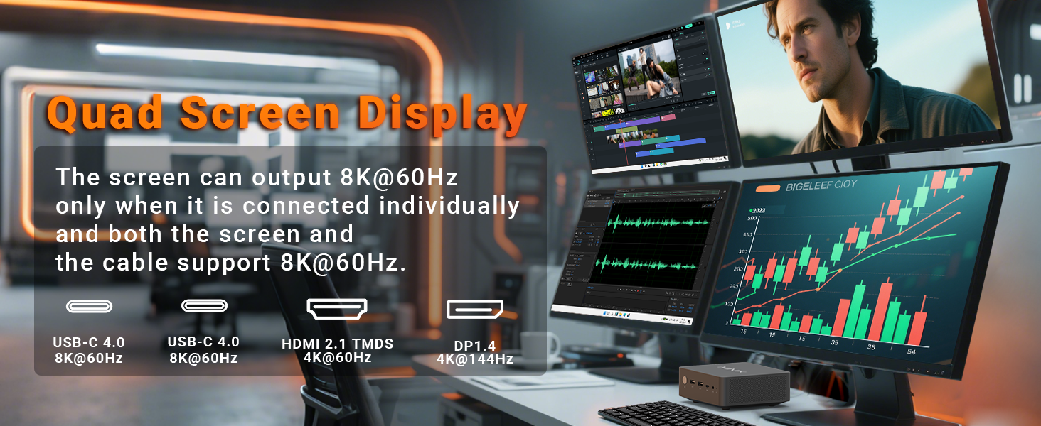 1 x HDMI® 2.1 TMDS (4K 60 Hz) + 1 x DP1.4 (4K 144 Hz) 2 x USB-C 4.0 (8K 60 Hz)