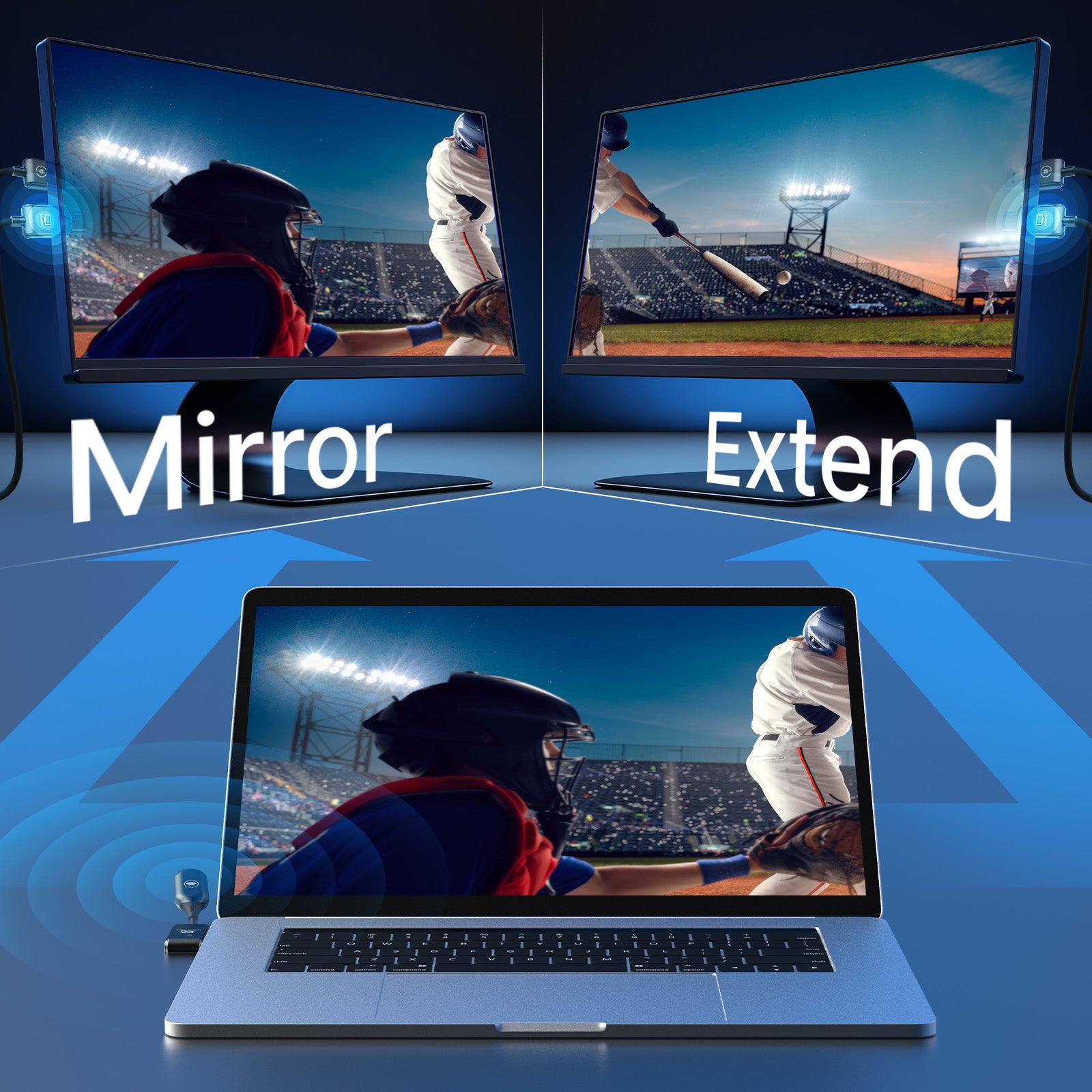 Choose between mirror or extend mode to suit your needs, whether it's duplicating your screen or expanding your desktop for enhanced productivity.