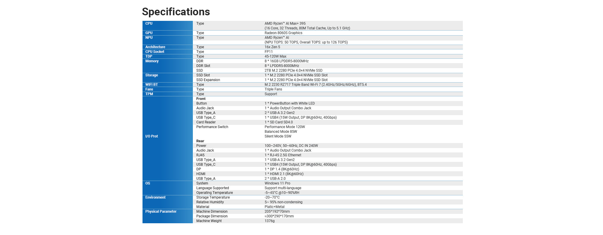 The ER939-AI is powered by the AMD Ryzen™ AI Max+ 395 processor (16C/32T, 5.1GHz max), delivering unparalleled performance for demanding tasks. Its 16 cores and 32 threads ensure seamless multitasking, making it ideal for professionals, gamers, and content creators who require maximum processing power.