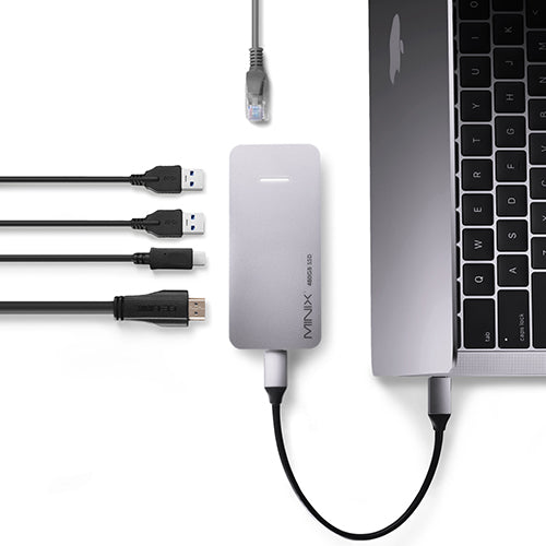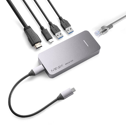 MINIX NEO Storage Plus, USB-C Multiport SSD Storage Hub with Gigabit Ethernet and 4K @ 60Hz HDMI is the world’s first portable storage hub that combines SSD storage with additional data + display output ports and offers multi OS support, including macOS, iPadOS and Windows 10 OS.