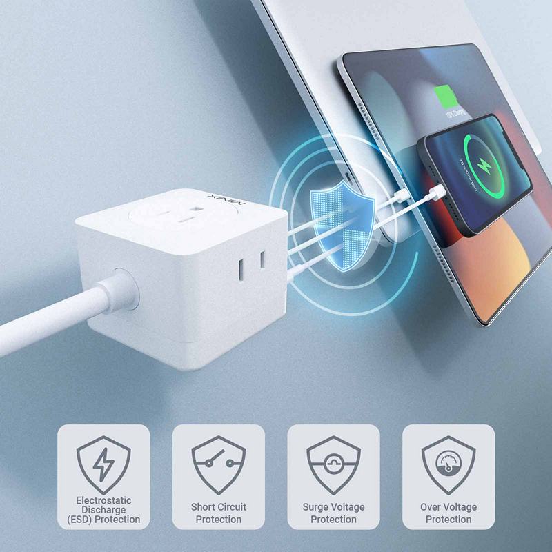 Our charger ensures safety with four essential protections: Electrostatic Discharge (ESD) Protection, Short Circuit Protection, Surge Voltage Protection, and Over Voltage Protection. These features guard your devices from potential electrical risks, providing a secure and reliable charging experience.