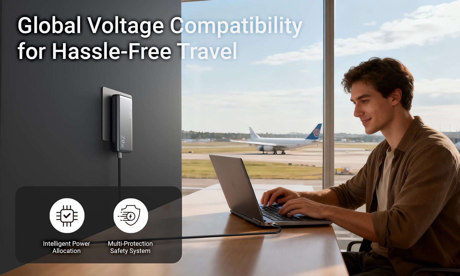 Travel worry-free with 100-240V~ global voltage support and 50/60Hz adaptability. Whether in Europe, Asia, or the Americas, the S70 automatically adjusts to local power standards, ensuring reliable charging anywhere.