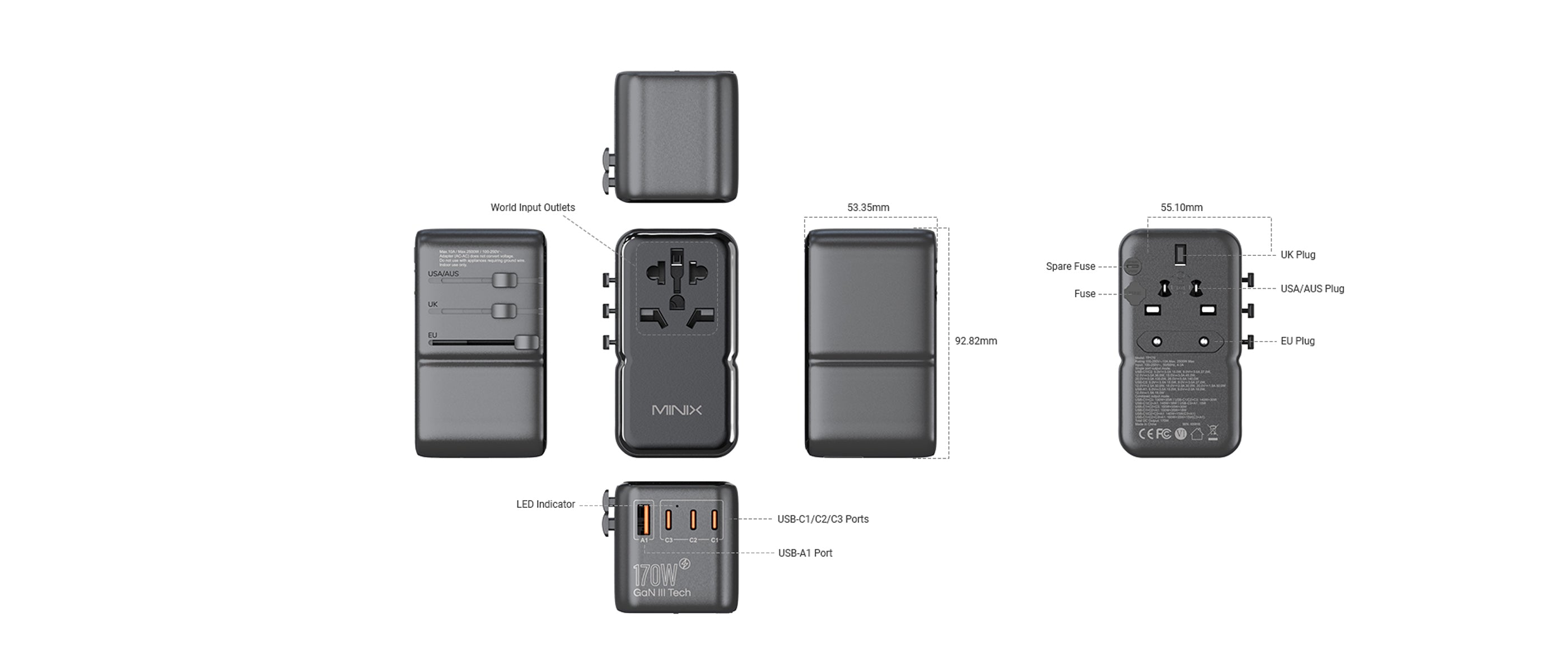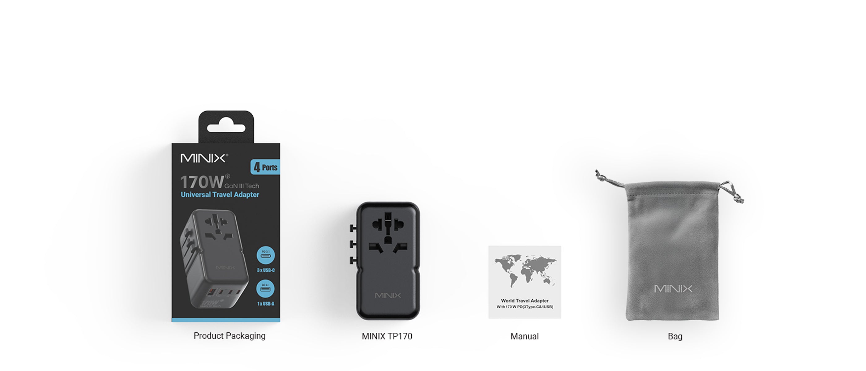 MINIX TP170 GaN-III 170W Universal Travel Adapter