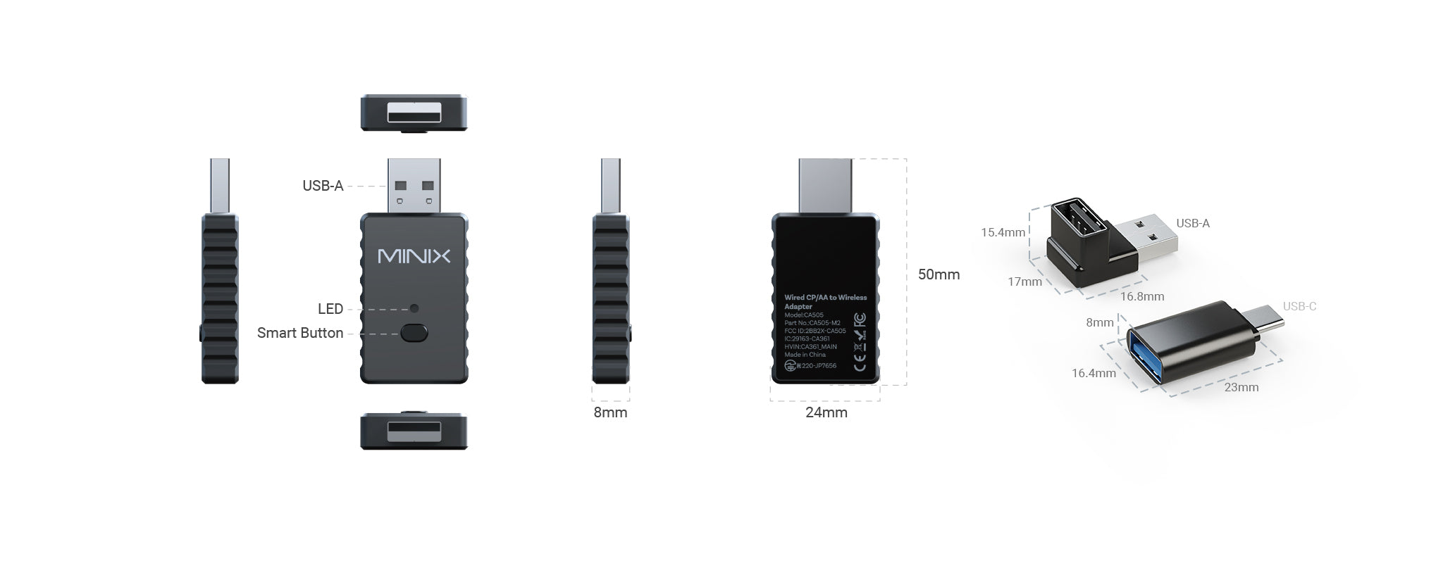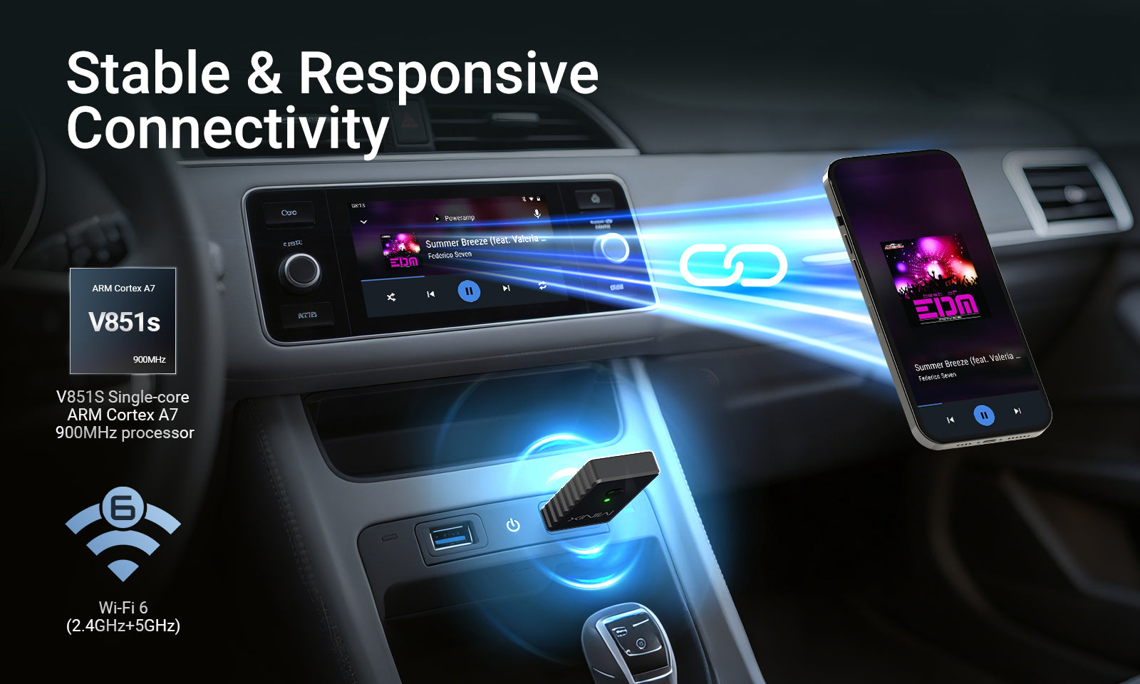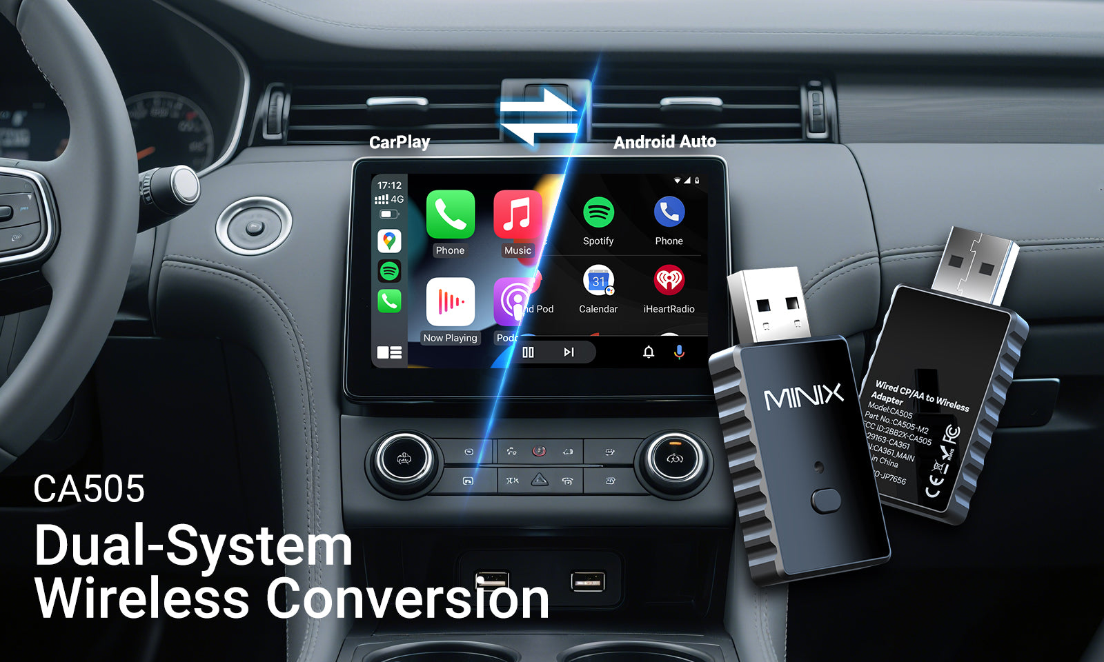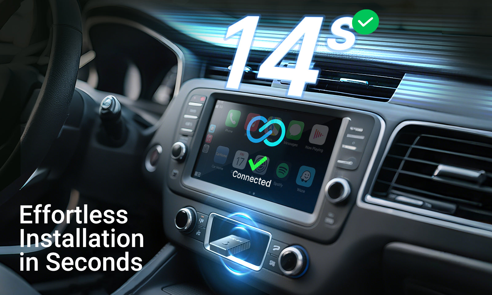 Simply connect the CA505 to your car’s head unit via USB-A or USB-C port (adapter included), pair with your phone via Wi-Fi 6 & Bluetooth 5.4, and enjoy instant wireless integration. No technical expertise required—ideal for all users.