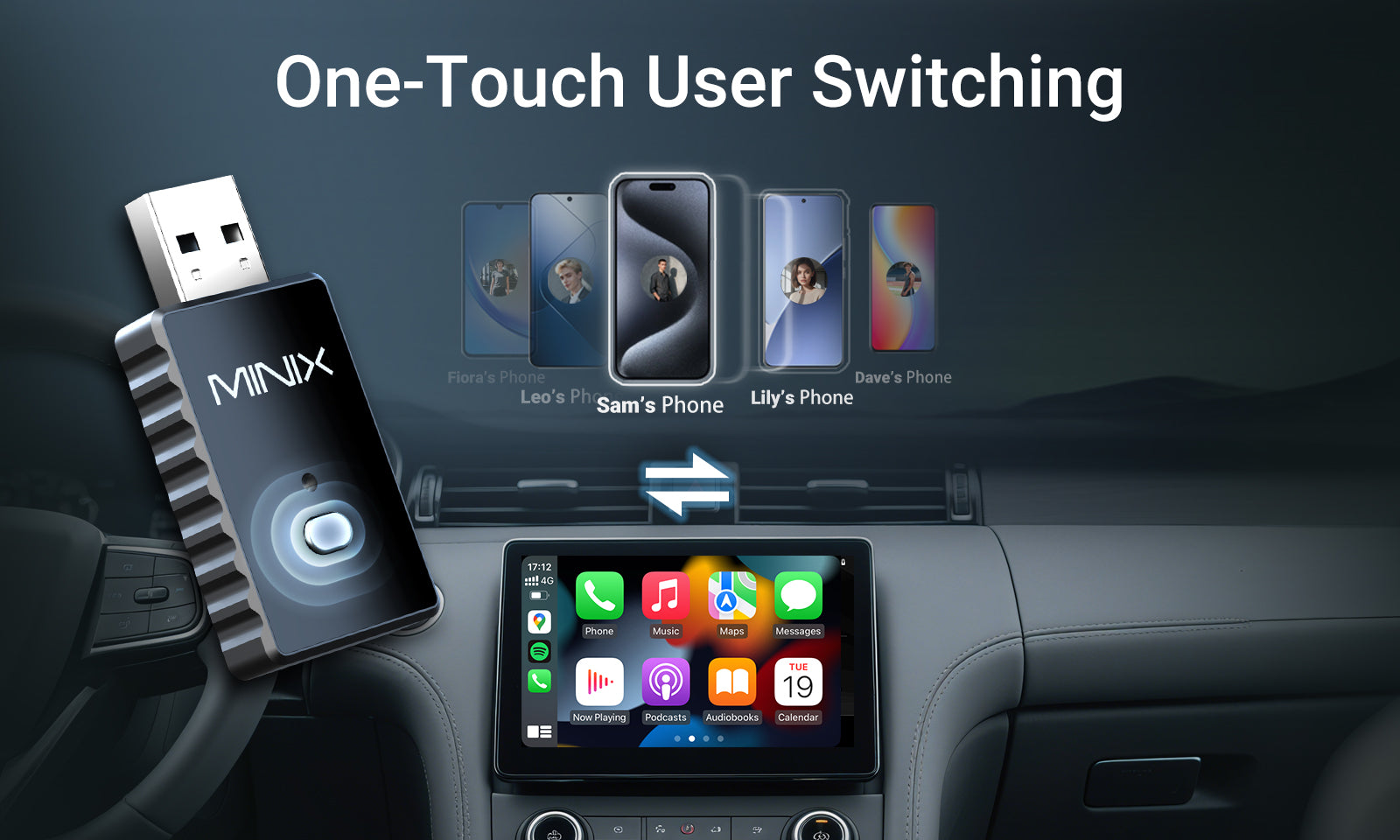 Features a smart physical button for quick profile changes, allowing multiple users to share the device effortlessly. No need to disconnect/reconnect manually—ideal for shared vehicles.