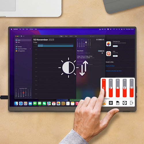 O SF16T Touch Edition permite ajustes rápidos nas definições do monitor através da sua interface táctil, oferecendo uma alternativa mais rápida aos botões laterais para uma personalização perfeita e eficiente das definições de visualização.